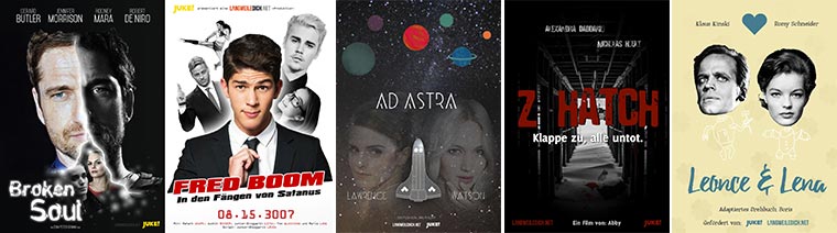 Ich muss zugeben die Filmplakate sehen super aus und sind wirklich gut umgesetzt. Jetzt bekomme ich Lust die Filme zu sehen. Schade, dass es nur fiktive Filme sind. Die Komödie Fred Boom klingt nach einer Menge Spaß und sowohl das Psychodrama Broken Soul, der Action-Thriller Z-Hatch als auch Ad Astra versprechen einen aufregenden Kino-Abend. Selbst die Literatur-Verfilmung Leonce & Lena kann mit der Besetzung nur erfolgreich sein. Mit den Plakaten und den Filmen kann es nur noch heißen: and the Oscars go to…