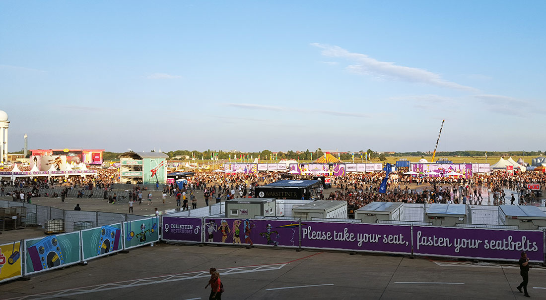 Das Lollapalooza hat am 12. und 13. September am alten Gelände des ehemaligen Flughafen Tempelhofs in Berlin stattgefunden. Beim verlassen des Eingangsgebäudes war der Anblick schon ganz schön imposant. Das Gelände ist im direkten Vergleich zum sonst dort stattfindenden Berlin Festivals um einiges größer und hat vor allem deutlich mehr zu bieten gehabt.