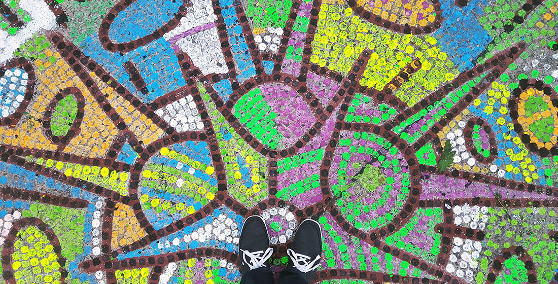 Kunst gab es auch viel zu sehen. Dabei beziehe ich mich nicht nur auf geflochtene Blumenkränze, Bodenmalereien oder Installationen, sondern auch das Artwork des Lollapalooza selbst. Die Illustrationen finde ich ungemein gelungen und vor allem fällt einem auf, dass das nicht vier Figuren sind, die sich ständig wiederholen, sondern eine riesige Bandbreite an abwechslungsreichen und originellen Motiven. Chapeau!