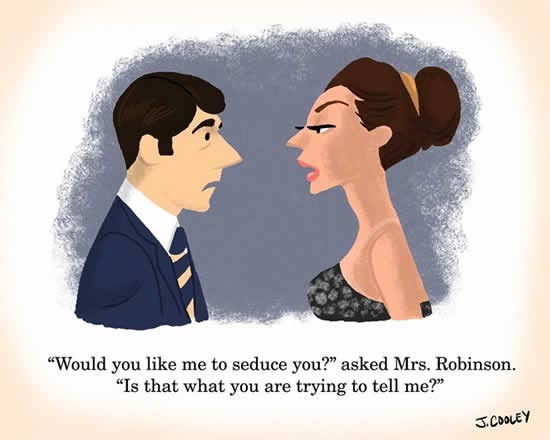 Josh Cooley arbeitet als Story Artist für Pixar in Kalifornien und hat sich einiger Filmklassiker angenommen um bedeutsame Sätze mit einer gelungenen Illustration zu versehen.