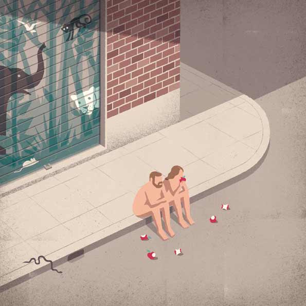 Bei den Arbeiten des italienischen Illustrators Davide Bonazzi lohnt sich stets ein zweiter Blick, sollte auf den ersten nicht direkt erkennbar sein, welche Aussage er damit bezweckt. Oftmals finden seine gesellschafts-beschreibenden und mit Assoziationen spielenden Motive Verwendung in Zeitschriften, wo sie als Cover-Artworks oder Editorial-Bebilderungen dienen. Hier eine Auswahl meiner persönlichen Favoriten aus seinem abwechslungs- wie farbenreichen Portfolio.