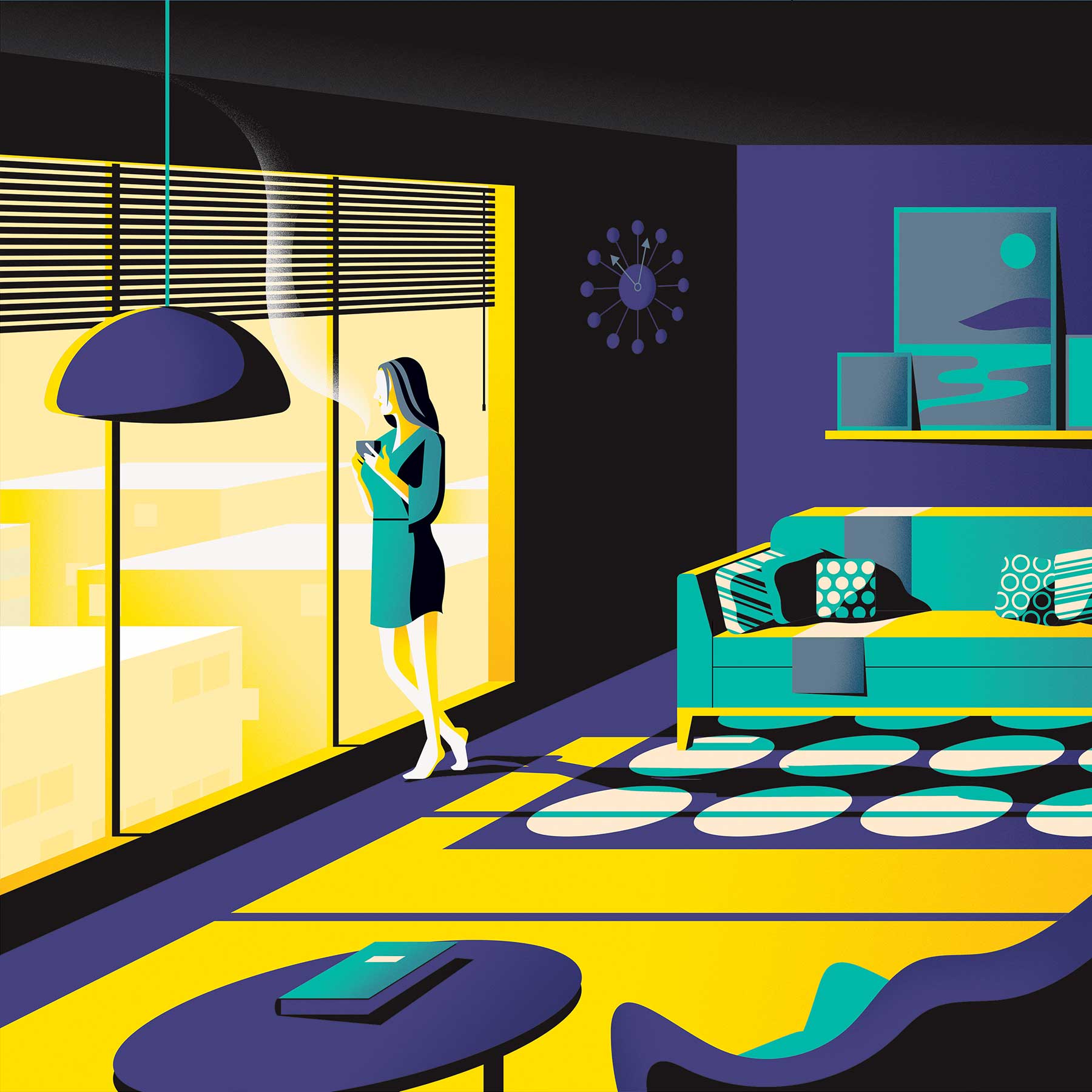 Der in Glasgow lebende Illustrator Jack Dally hat mit seiner Auftragsreihe „Essential Living“ eine schöne Strecke über die britische Hauptstadt erstellt. Dabei musste er – was ich ja jetzt nicht soo unsympathisch finde – die Markenfarben des Auftraggeber einbinden: Schwarz und Gelb. Ist gelungen, würde ich sagen.