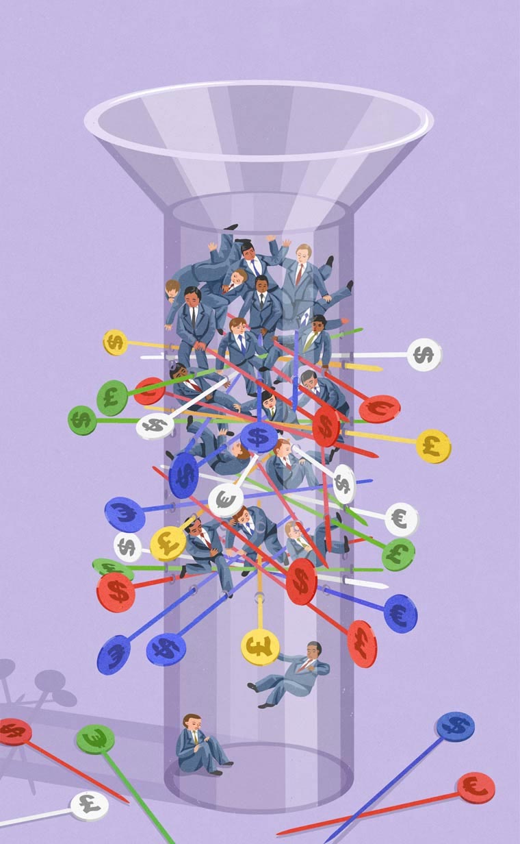 Wahre Dinge smart und einfach verpacken, so dass selbst die kritischste Sichtweise durch Sarkasmus und Ironie an Unterhaltungswert gewinnt – und im Zweifel von denen, die sie adressieren, gar nicht erst verstanden werden. Der Brite John Holfcroft schafft es, zeitgemäße Trends und Gesellschaftsausformungen gekonnt in satirische Bebilderungen zu gießen. Nicht umsonst sind seine Werke bereits im Guardian oder dem Economist gelandet. Hinzu kommt ein gefälliger Retro-Touch im Darstellungs-Stil – fertig ist einer eurer neuen Lieblings-Illustratoren!