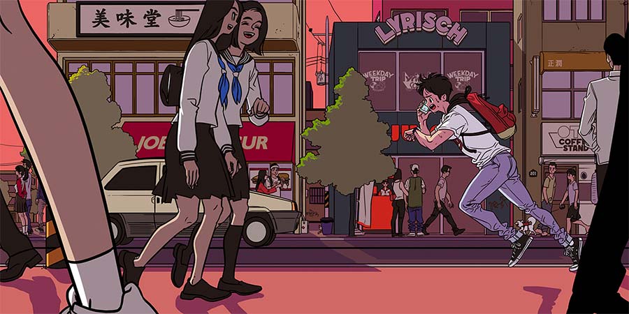 Der koreanische Illustrator Kim Jungyoun erstellt Motive, die lockerleicht und kindlich wirken, aber doch erstaunlich und erfreulich detailreich sind. Eine moderne Anime-Aufmachung, die ich als TV-Serie absolut anschauen würden. Oder vielleicht mal als Kurzfilm? Bitte…