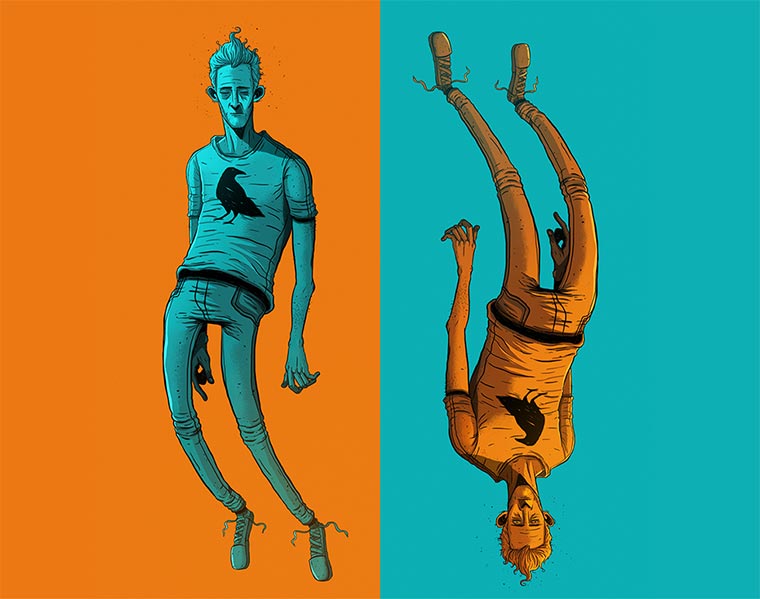 Ich mag den Illustrations-Stil von Lucas Wakamatsu sehr. Der brasilianische Design-Student weiß mit klaren Linien und gewagten Farbkontrasten zu überzeugen. Orange-Blau geht eh immer. Aber die Charaktere sind originell inszeniert und wirklich tatsächlich lebendig. Ich würde gerne mal Comics von ihm in diesem Stil lesen!