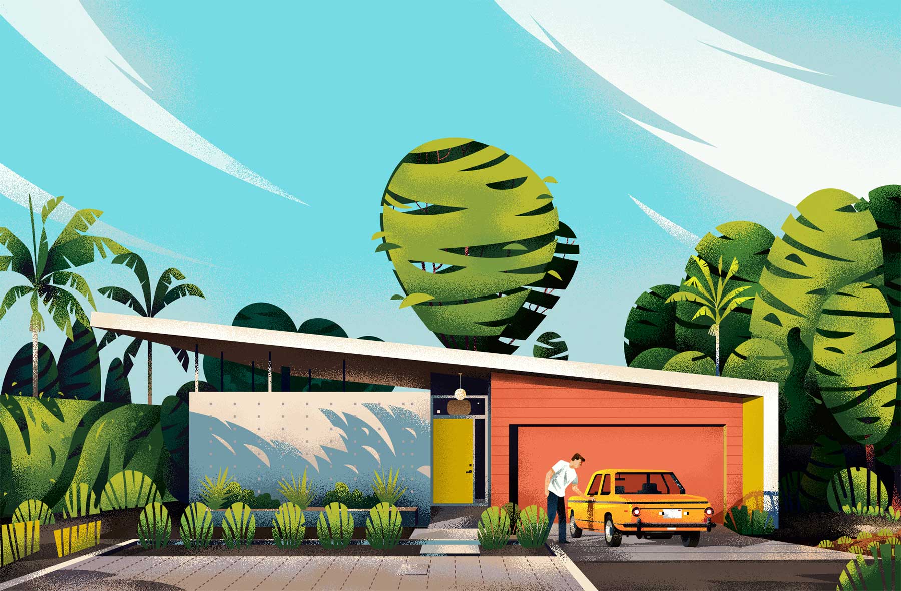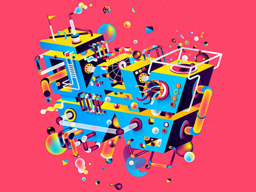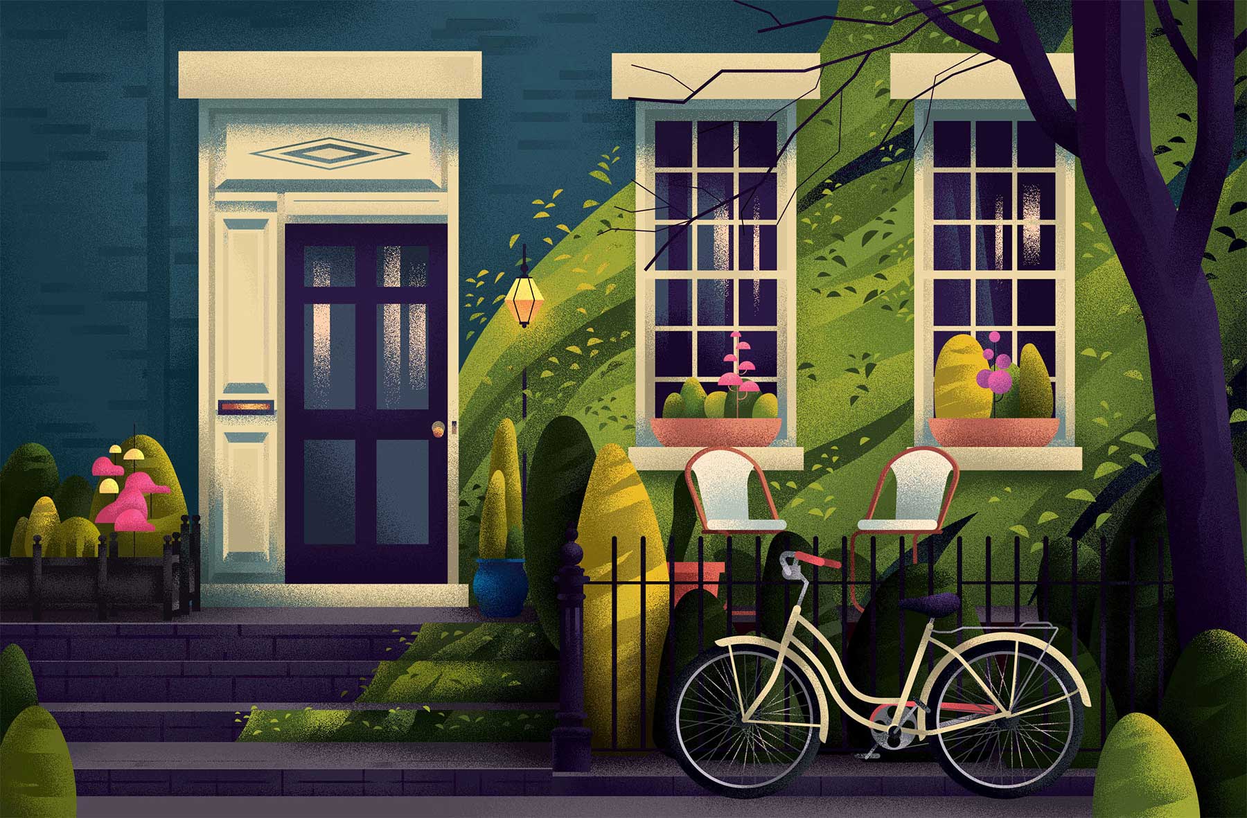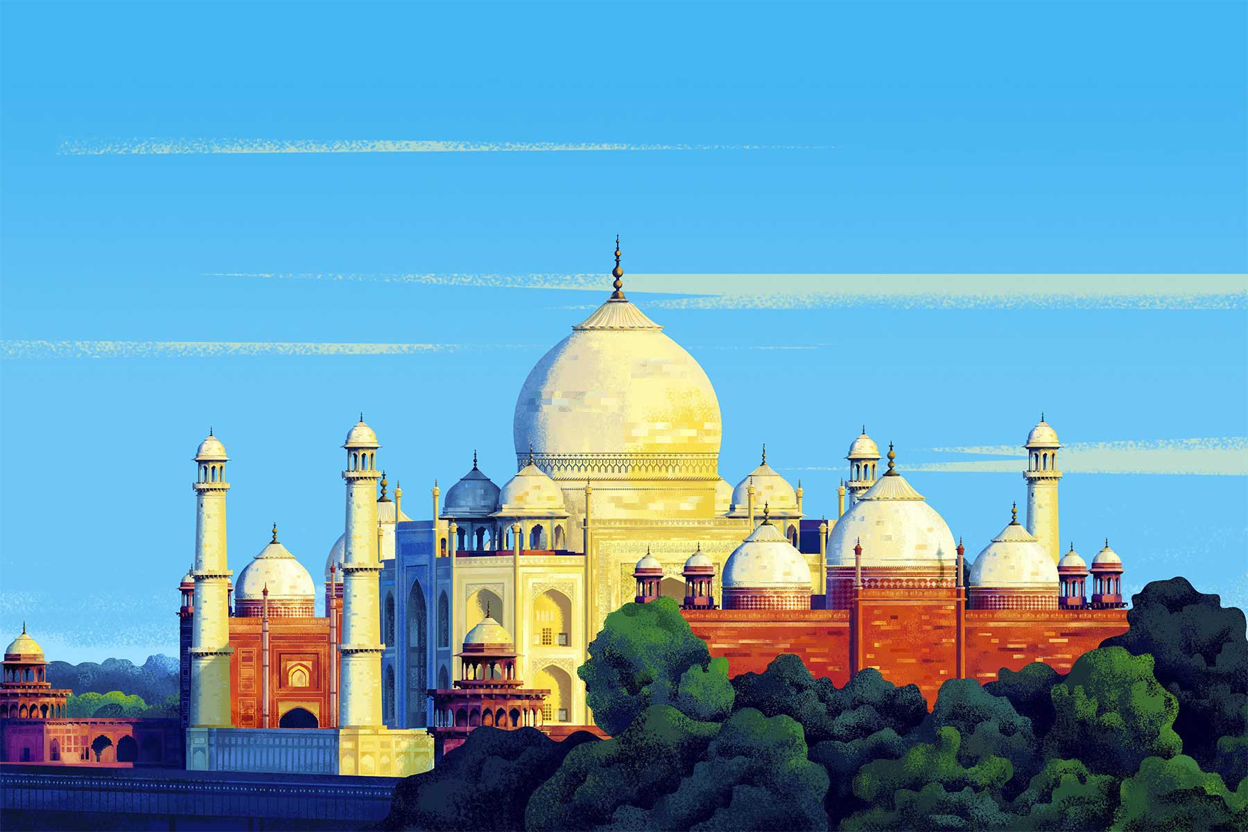 Der indische Illustrator Muhammed Sajid erstellt tolle Illustrationen, die sowohl saubere Formführung als auch Struktur besitzen. Vor allem die detailreichen Darstellungen von Häusern und Orten haben es mir angetan – das muss Stunden gedauert haben! Aber auch die versimplifizierte Darstellung von Personen und Tieren hat Sajid drauf – und das Animieren von ästhetischen GIFs.