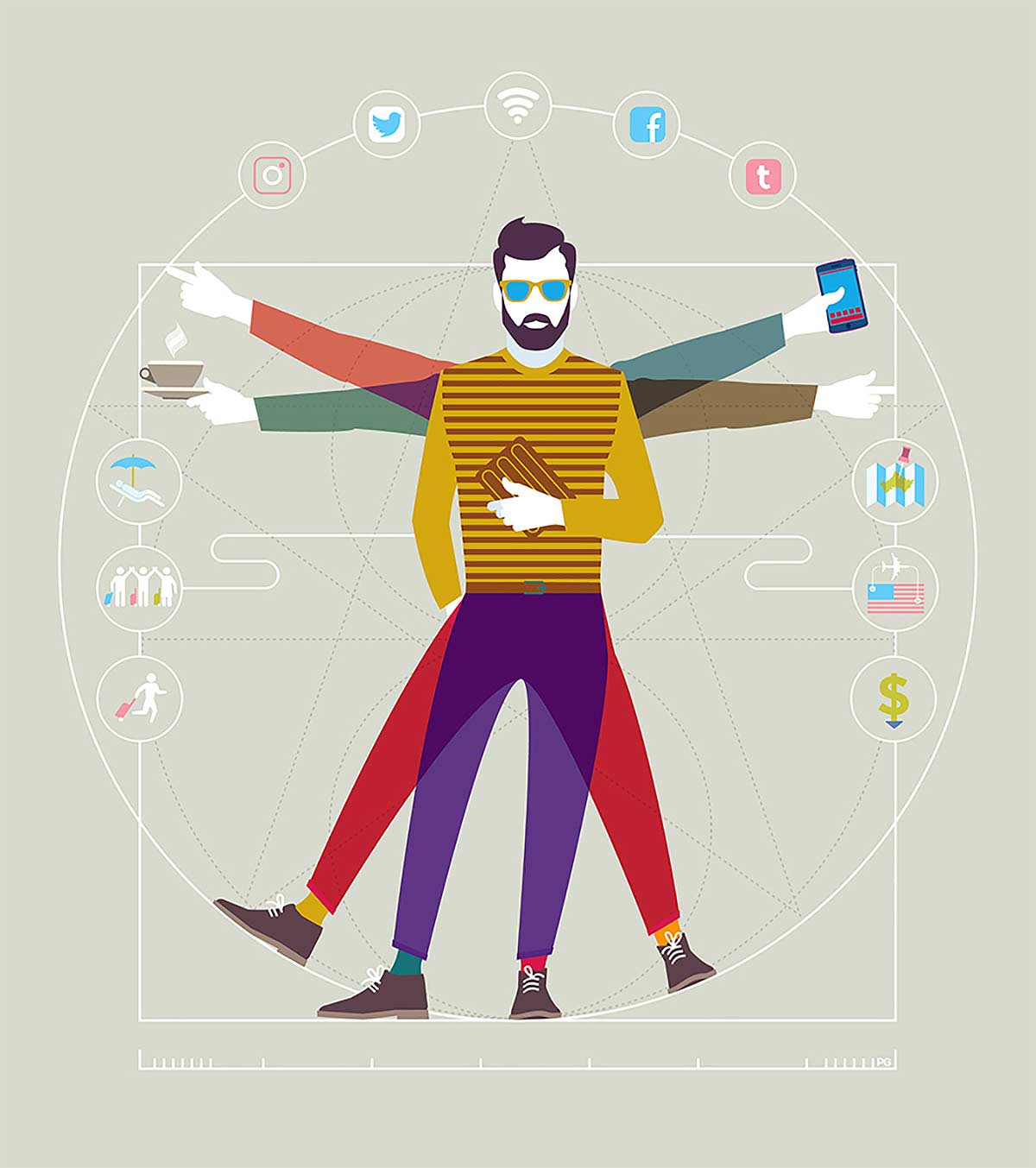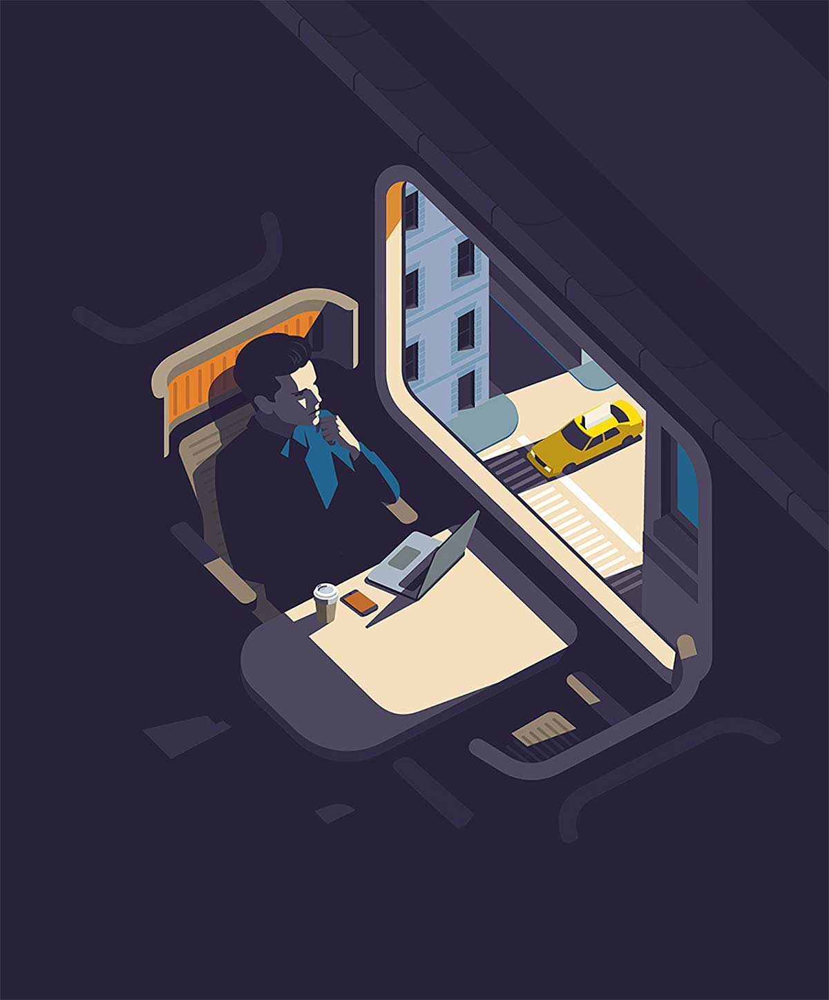 „He works in a graphic style using vector based imagery. With a keen interest in art, music, space, old cars and colour he works across editorial, publishing and advertising to create bold iconic illustrations.“