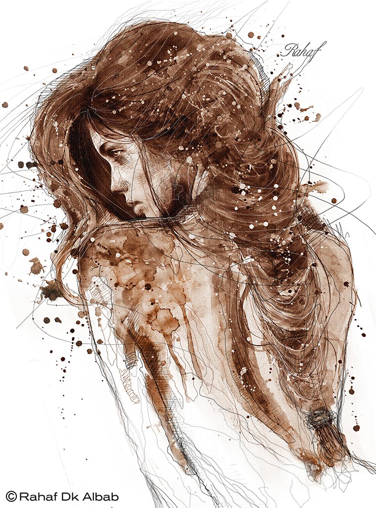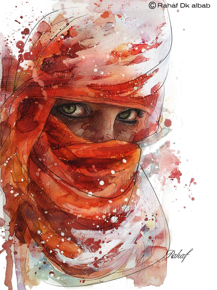 Eine farbenfrohe Kombination aus Wasserfarbe und Zeichnung bietet uns die syrische Grafik-Designerin Rahaf Dk Albab mit ihren Arbeiten. Sehr moderner und dynamischer Anstrich, der durchaus Platz in qualitativ hochwertigen Fashion-Magazinen finden sollte.