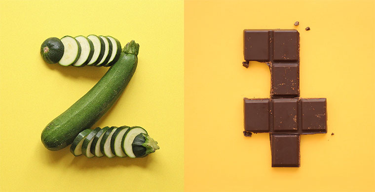 „Instead of simply creating a letter or number as we saw fit, we limited ourselves to a very familiar theme: snacks. Every number or letter that we created had to visually represent a snack. The name of the snack was determined by the letter it embodied.“