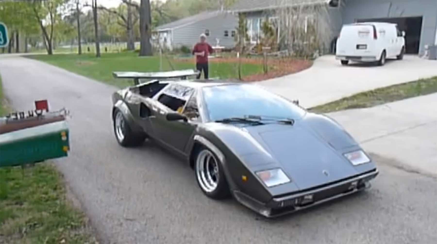 „Ken Imhoff spent 17 years building his dream car a Lamborghini Countach in his basement, after falling in love with the Black Lamborghini from the movie Cannonball Run.“