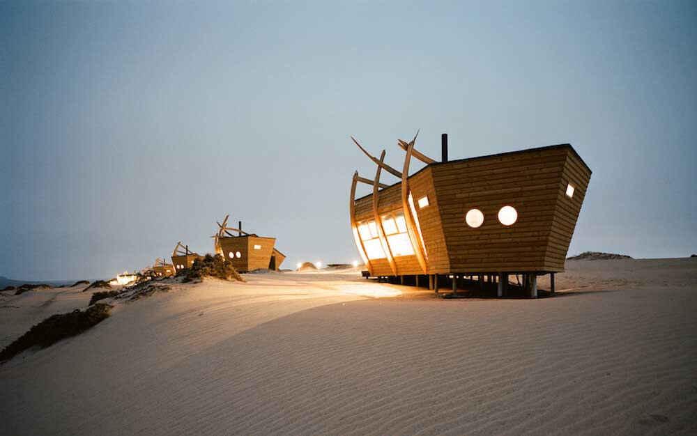 In der „Shipwreck Lodge“ kann man in sehr stylischem Ambiente inmitten der afrikanischen Wildniss und Einsamkeit fernab des städtischen Trubels urlauben. Die Architektur der Schiffswracken nachempfundenen Bungalows gefällt mir ungemein gut. Und sollte euch der Name der Küste zu große Angst machen – die Lodge liegt auch an der „Möwebucht“, das klingt gleich viel niedlicher.