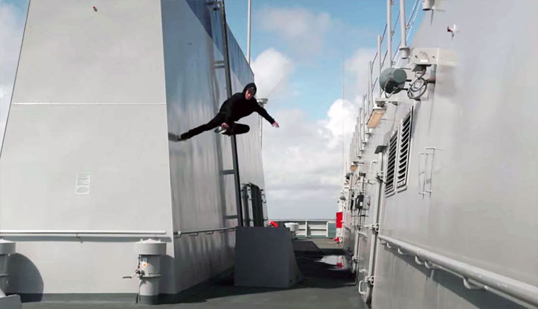 Dass Inliner-Pro Sven Boekhorst gerne mal verrückte Dinge beskatet wissen wir ja eigentlich schon. Jetzt hat er einen ganz besonderen Spielplatz für sich entdeckt: die L800. Ein Flugzeugträger der Royal Netherlands Navy. Im Rahmen der Marinedagen 2015 hat er das Teil unsicher gemacht und allerlei neue Spots besprungen und befahren.