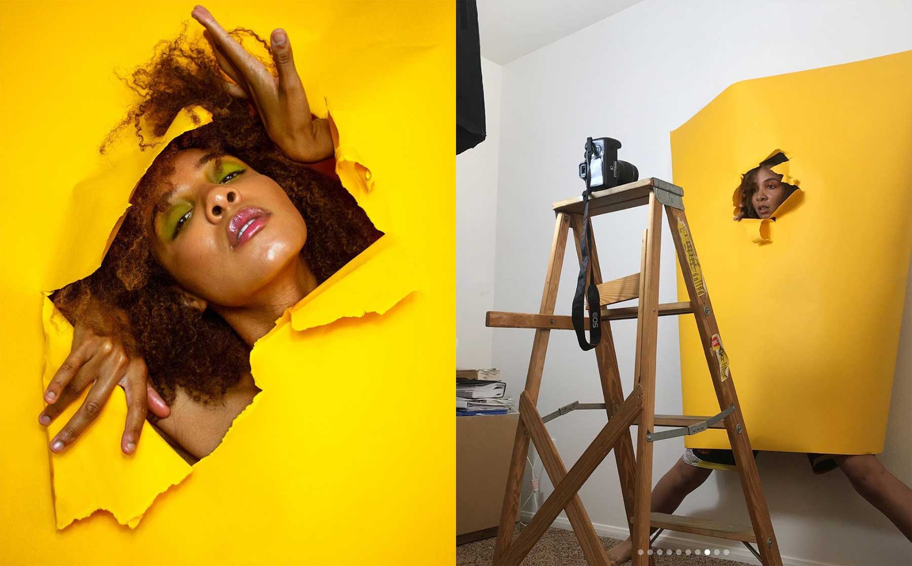 Auf Instagram hat Kimberly Douglas aka @kihmberlie bereits über 90.000 Follower, durch ihre offene Art und darüber berichtende Beiträge, wie diesen hier, dürfte die Sechsstelligkeit nur eine Frage der (kurzen) Zeit sein. Sie erstellt und zeigt nämlich nicht nur tolle Selbstportraits vor originell und abwechslungsreich gestalteten Kulissen, sondern oftmals auch, wie sie diese erstellt hat. Denn für außergewöhnliche Sets muss man nicht zwangsläufig das Haus verlassen oder wer weiß was für Aufwände betreiben. Natürlich sind auch ihre Umsetzungen aufwendig, aber alles noch im Rahmen und die Hauptzutat ist und bleibt eh die Vorstellungskraft. Plus Durchhalte-Vermögen, Leidenschaft und ein gewisses Auge für fotografische Komposition.