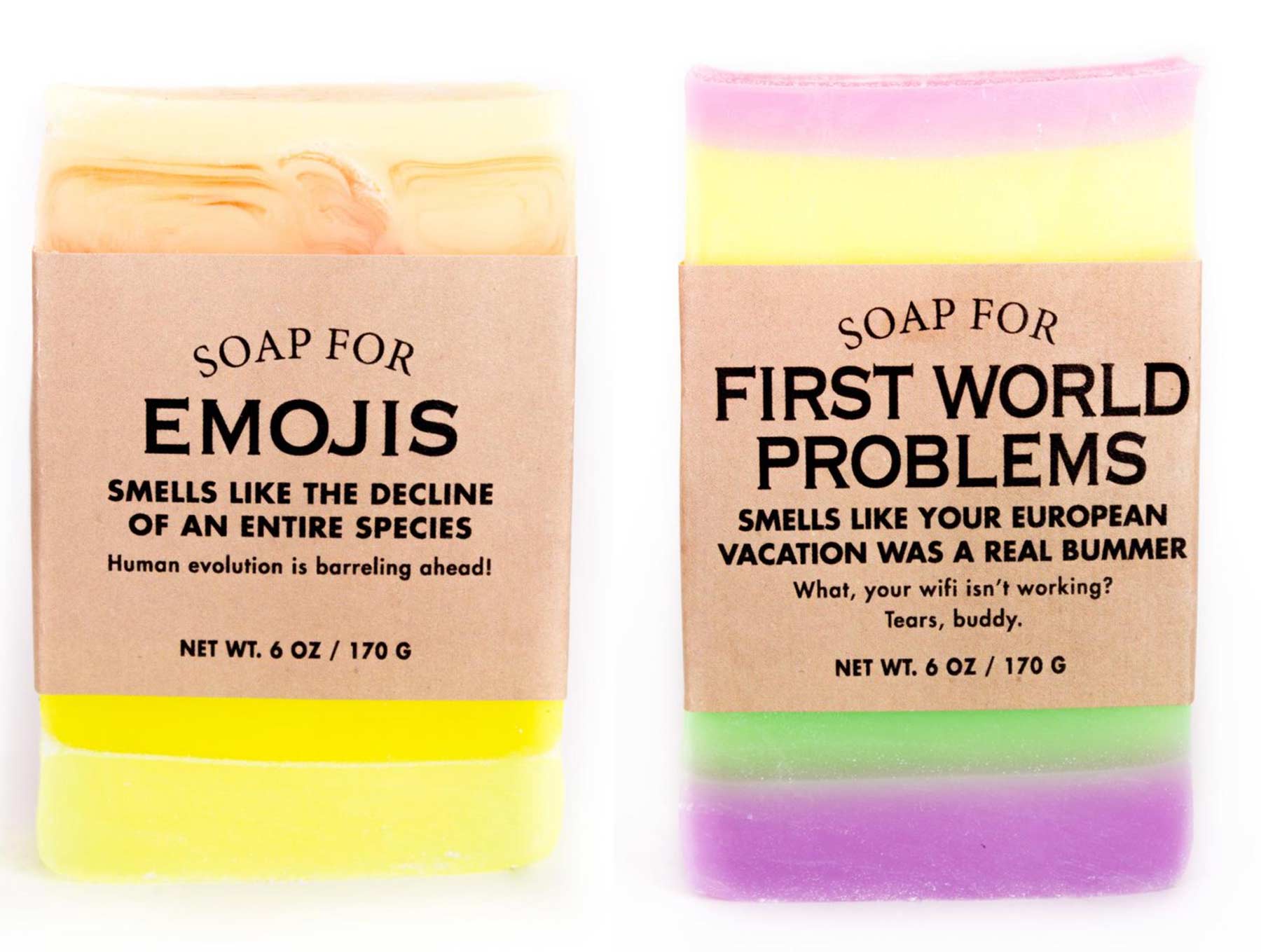 Na, wolltet ihr nicht auch schon immer mal wie ein böser Diktator oder ein nigerianischer Geschäftsmann riechen? Oder nach „Erste Welt-Problem“ oder „Fake News“? Selbst der fortwährenden Langeweile wurde ein eigener Seifenduft spendiert. Beschreibung: