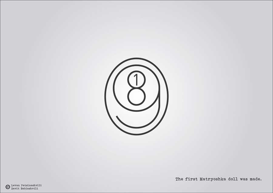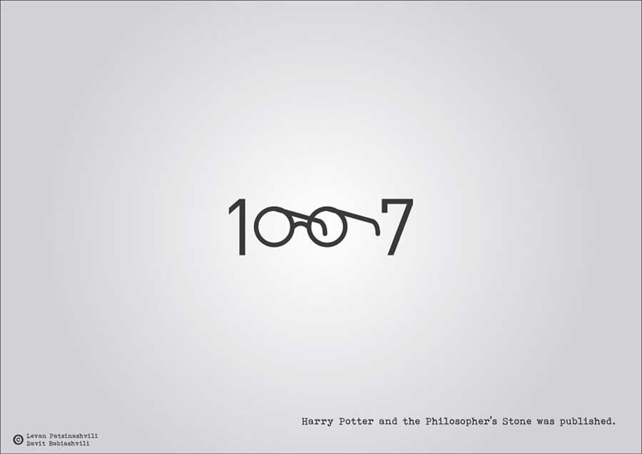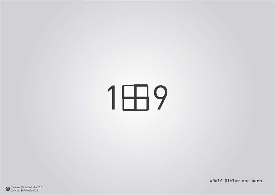 „Drei-drei-drei, bei Issos Keilerei“ – es gibt so einige Jahreszahlen und Eselsbrücken, die wohl viele von uns kennen und so werden Zahlen mit Geschehnissen verbunden. Dummerweise ist mein Geburtsjahr 1986 nicht primär mit mir, sondern vor allem mit dem Atom-Desaster in Tschernobyl verbunden. In ihrer Reihe „Digital Chronicles“ haben Levan Patsinashvili und David Babiashvili einigen bedeutsamen Momenten eine kreative Visualisierung in Form der Jahreszahl ihres Geschehens erstellt. Da versinkt bspw. die Titanic’sche „1912“ in Schieflage im Weißraum oder zwei Neunen bilden eine Brille, um einen bekannten Zauberer-Jungen zu imitieren. Von recht simplen Anspielungen bis zu um die Ecke gedachten und etwas aufwendigeren Umsetzungen ist so einiges Kreatives dabei. Und ganz nebenbei lernt man auch noch das ein oder andere Geschichtliche. Visuelle Eselsbrücken, quasi.