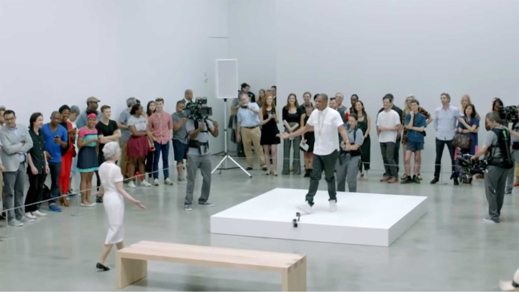 Gerade dachte ich erst noch, ob ich das Video hier überhaupt posten solle, immerhin wurde es bereits am 4. Dezember auf dem offiziellen YouTube-Kanal von Jay-Z hochgeladen. Aber haha – shame on me! Das Teil ist bereits acht Jahre alt! 2013 hat der Rapper seinen Song „Picasso Baby“ sechs Stunden am Stück gerappt, um so zum lebendigen Ausstellungsstück zu werden. Ist natürlich hoch-inszeniert, vor allem mit all den ausgewählten Besucher:innen, aber die Idee, dass man sich da einzeln auf eine Betrachtungs-Bank setzt, um einem dargebotenen Stück Musik-Kunst zu frönen, hat schon was!