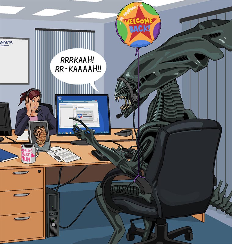 „Dear Jim, please paint me The Alien Queen, back off maternity leave and bollocking everyone for not using Dropbox properly.“