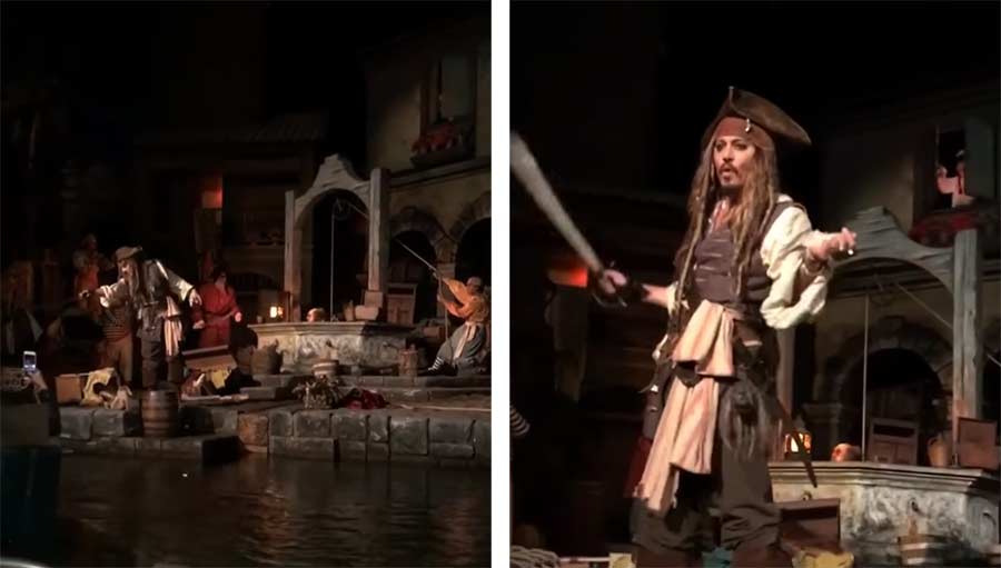 Johnny Depp überrascht Disneyland-Besucher als Jack Sparrow Johnny-Depp-surprises-Disneyland-guests-as-Jack-Sparrow-in-Pirates-of-the-Caribbean-ride
