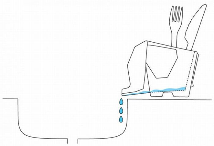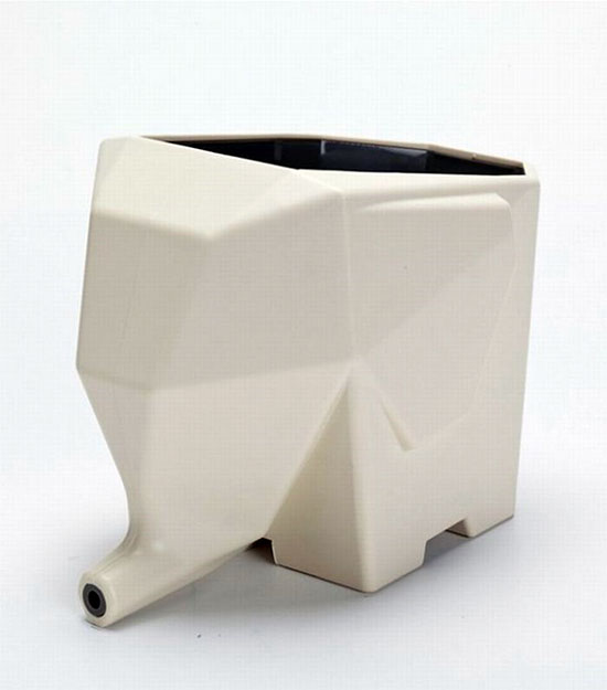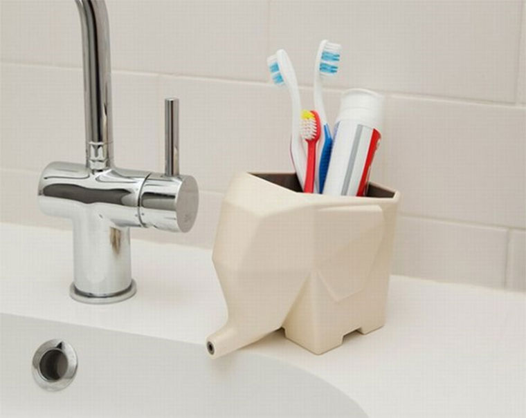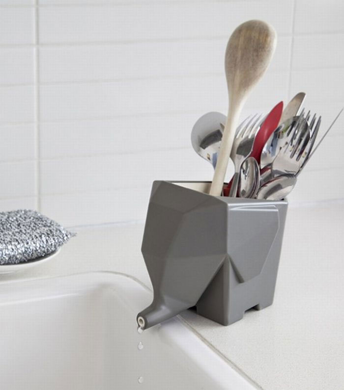 Mal wieder ein schönes kleines dekoratives Accessoire für die eigenen vier Wände. Jumbo von Peleg Design ist ideal um abtropfendes Besteck oder Zahnbürsten zu horten. Der Clou: ein kleiner Kanal verläuft im Inneren, so das das Spülwasser aus dem Rüssel herausgeleitet wird. Putzig!