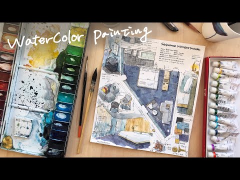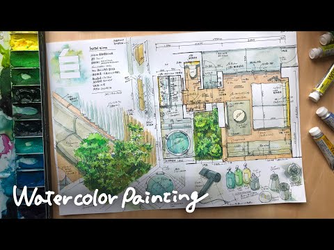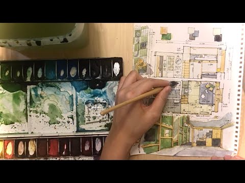 Die japanische Architektin Kei Endo erstellt gerne mit Wasserfarbe colorierte Skizzen von Hotelzimmern. Meist gibt es dabei nicht nur den Grundriss der Anlage sondern auch kleine Detailansichten zu sehen. Vor allem gefallen mir die Videos von ihr, in denen man den Colorierungs-Prozess beobachten kann.