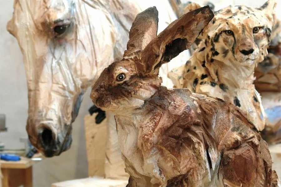 Jürgen Lingl-Rebetez erstellt beeindruckende Holzskulpturen. Bei den Tierbüsten gefällt mir vor allem die dem Kettensägenschnitt geschuldete raue Beschaffenheit sowie die lediglich partielle Bemalung. Vor allem die großen Tiere des bayerischen Künstlers wirken sehr stark und beinahe bedrohlich.