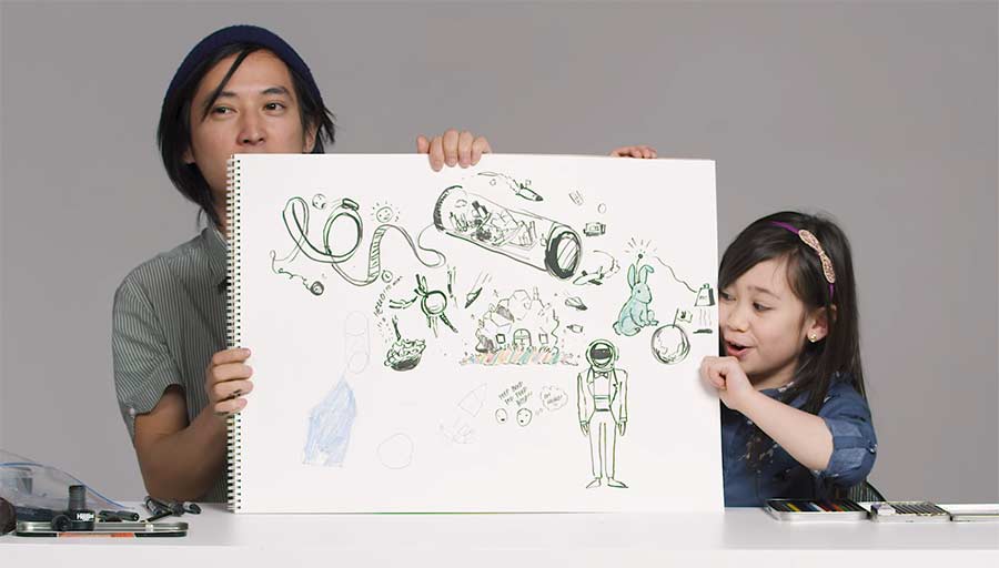 Die kindliche Fantasie anzuzapfen ist ja nie eine wirklich schlechte Ideen, sprühen die kleinen Köpfe doch nur so vor irrationaler Träumerei. Entsprechend unterhaltsam ist es, wie HiHo Kids einige Kids nach deren Zukunftsvision fragt und diese entsprechend von einem Illustrator zeichnen lässt. Freue mich bereits auf das „Wie ist es gelaufen?“-Vergleichsvideo in 30 Jahren.