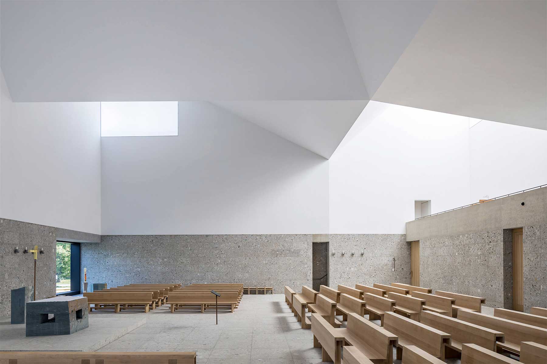 „Das Kirchenzentrum Seliger Pater Rupert Mayer befindet sich in der nordöstlich von München gelegenen Gemeinde Poing im Ortsteil Bergfeld, der seit den 1980er Jahren durch die Kommune zum neuen Ortszentrum entwickelt wird, um dem stetigen Zuwachs aus der Großregion Münchens gerecht zu werden. Das neue Kirchenzentrum besetzt dabei eine städtebaulich wichtige Stelle in unmittelbarer Nähe zu Bürgerhaus, geplantem Rathausstandort und evangelischer Kirche. Die neue Ortsmitte ist Bindeglied zwischen dem neuen nördlichen und dem alten südlichen Ortsteil. Sie bildet den Auftakt eines nach Nordwesten verlaufenden großen Grünzuges mit einem naturnah gestalteten Weiher in unmittelbarer Nähe des Grundstücks.“