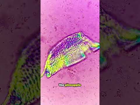 @sf_microscopy One of my favorite fruits is pineapple, but every time I eat them, my mouth tingles. I read that the fruit contains raphides! Kiwis, grapes, taro, and yams also have large amounts of these crystals. These needles serve as a defensive function against insect herbivors to deter them from eating the plant’s fruits and protect the seeds. The needles work with other chemcial substances, like bromelain in the pineapple, to amplify the effects. #microscope #microbiology #underthemicroscope #microscopy #microcosmos #nature #pineapple #crystals #fyp #fypage #fypシ