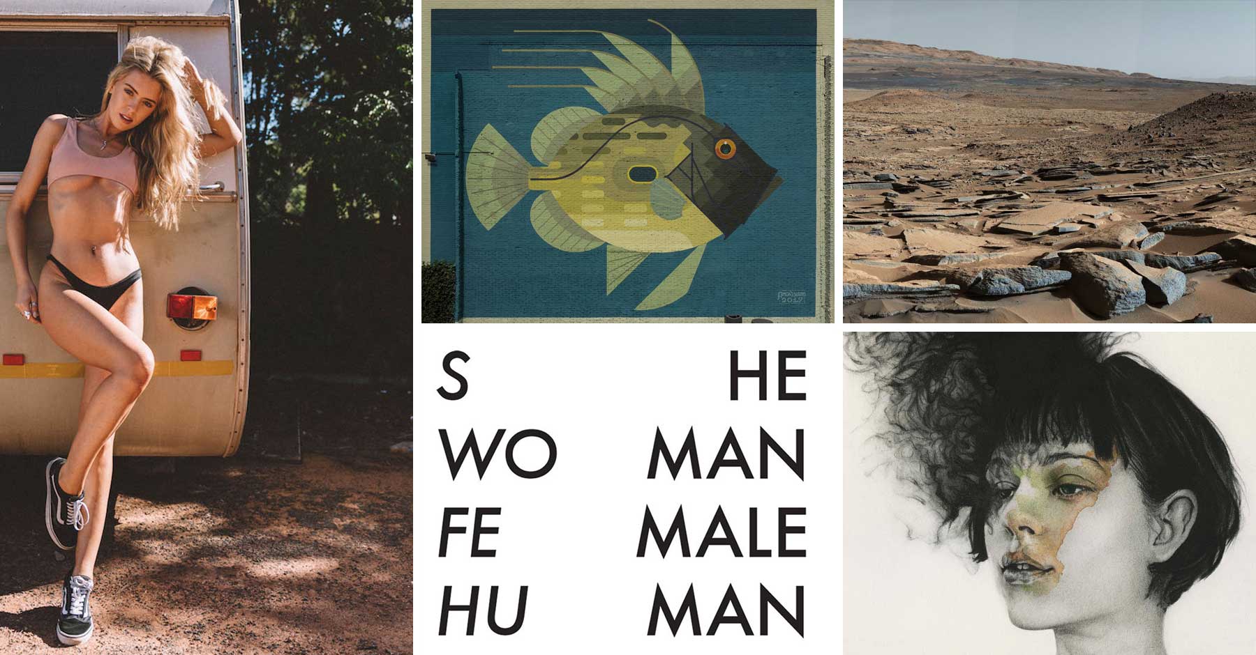 Minimalistische Tier- und Pflanzen-Murals von Amok Island.