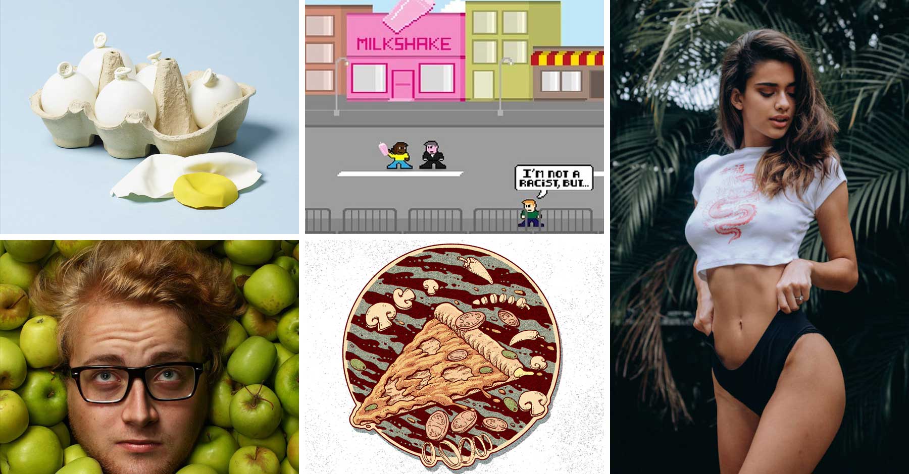 Kevin Goss-Ross lässt seine Models in der Reihe „Fruits & Veggies“ in selbigem versinken.