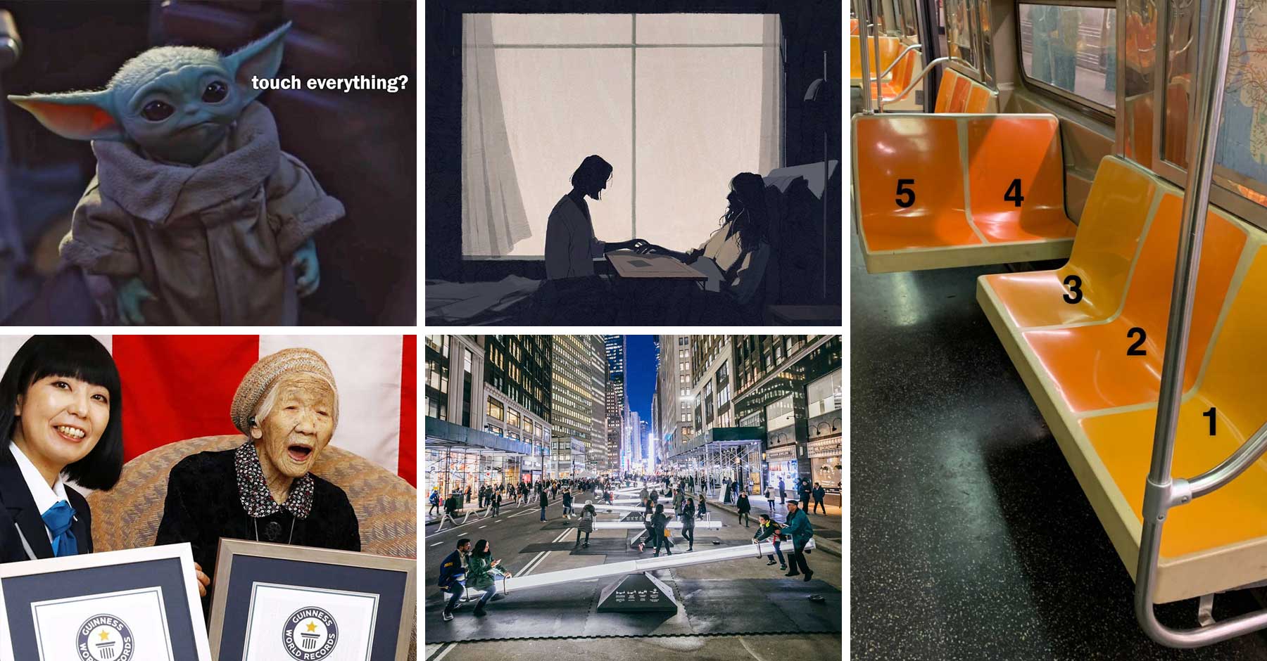 In New York City wurden reihenweise leuchtende Wippen aufgestellt.