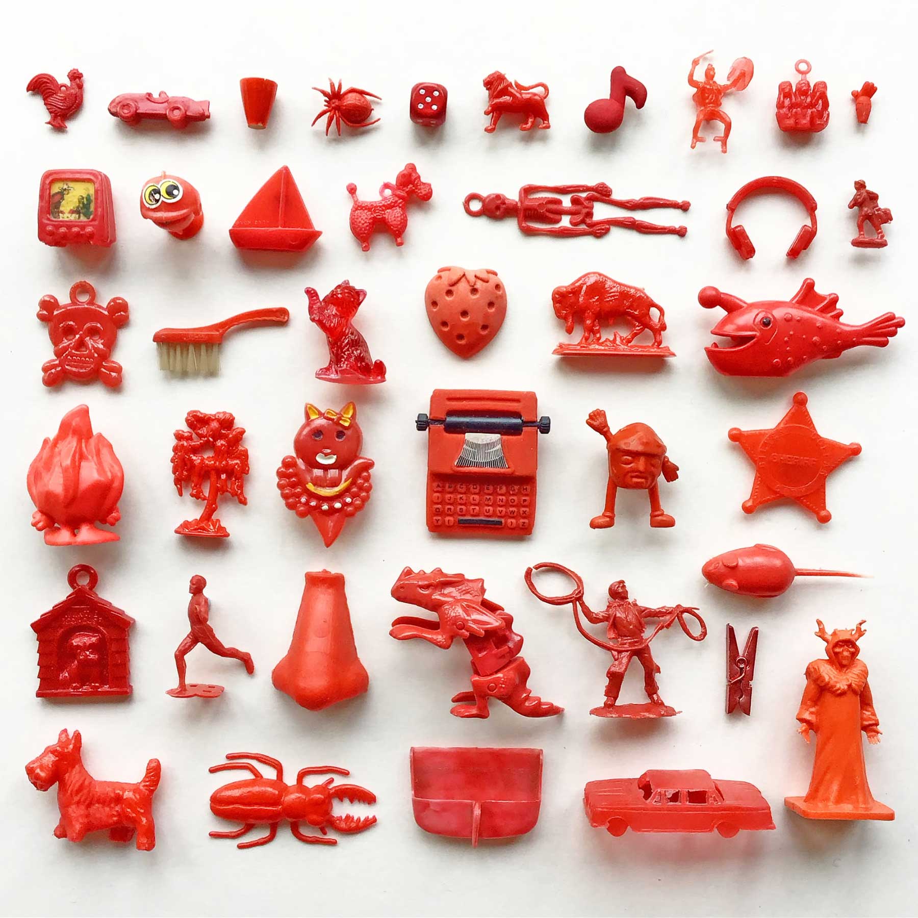 Jane Housham aus Großbritannien sammelt gerne Kleinstkram, um diesen – inhaltlich oder farbig sortiert – anzuordnen. Klingt nach wenig, hat aber eine erstaunliche Wirkung, wenn das Gesetzte von Oben fotografiert wird. Hier ein paar Beispiele.