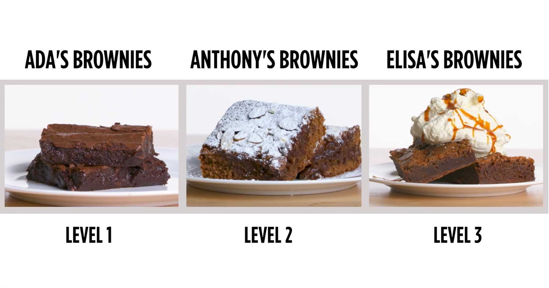 „How do you like your brownies? Gooey? Cakey? We challenged chefs of three different levels – an amateur, a home cook and a professional chef – to make their versions of the brownie. And then we brought in a food scientist to review their work. Which brownie was the best?“