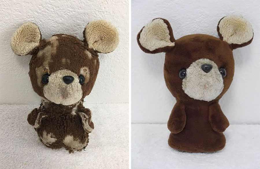 Eingesandte „verl(i)ebte“ Patienten erhalten eine Generalüberholung. Verlorene Augen werden ersetzt, totgekuschelte Stellen erneuert und alles ordentlich gewaschen. So erhalten (kleine wie große) Kinder ihre Liebsten erneuert zurück, aber haben noch immer das Original im Arm, statt einen plumpen, neuen Ersatz, der nie dem alten das Wasser reichen kann. Tolle Idee! Der besonders liebliche Eindruck wird zudem noch dadurch verstärkt, dass die Tierchen so inszeniert werden, als würden sie sich tatsächlich um sich kümmern und ein eigenes Leben besitzen. Wieso schreibe ich eigentlich im Konjunktiv…?