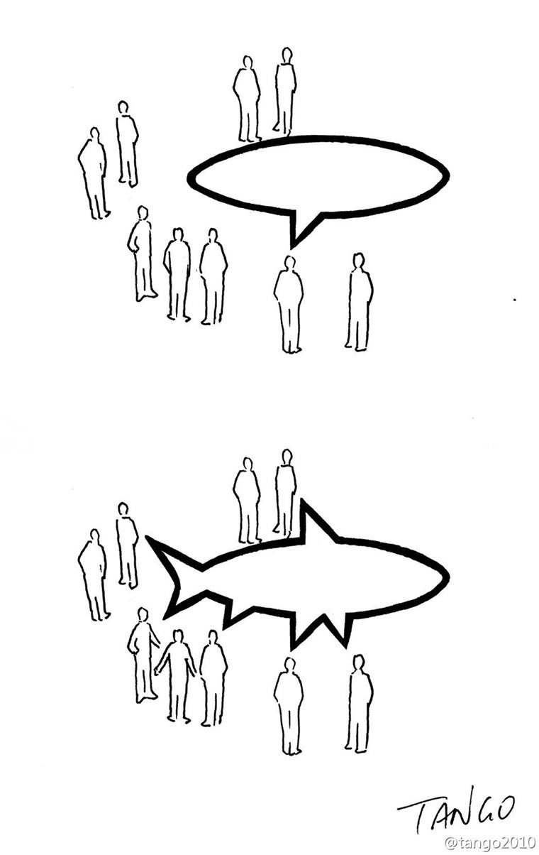Spiele mit Schatten, Formen und Perspektiven sind bei den Arbeiten des Künstlers Tango aus Shanghai ebenso an der Tagesordnung wie die bildliche Umsetzung von Wortspielen und philosophisch-charmanten Gedankenspielen. Da ist der Schatten einer Katze schon einmal ein Schirm, Obstsorten joggen auf Laufbändern oder Pinguine vollenden Schriftzüge. Einfach herrlich unterhaltsam, sich durch die vielseitigen Cartoon-Motive zu klicken. Hier eine kleine Auswahl seiner tollsten Bilder.
