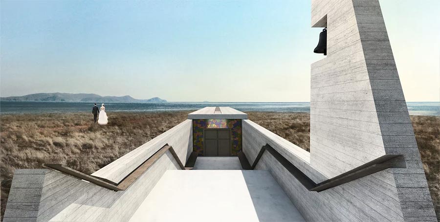 Ich besuche sehr selten Kirchen. Zumindest nicht als Gläubiger, bin ich erst kürzlich aus der Kirche ausgetreten. Aber als Fan toller und außergewöhnlicher Architektur. Denn oft hat die Kirche massenhaft Geld zur Verfügung (auch einer meiner Gründe für den Austritt…), um epochale Bauten errichten zu lassen. Das ist dann wenigstens toll anzuschauen. Ein ganz besonderes Exemplar soll The Holy Cross Chapel werden, die in ikonischer Kreuzform gestaltet mitten in einen Felsvorsprung ans Meer gebaut werden soll.