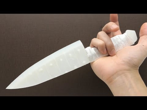 Eigentlich ist das mittlerweile nicht mehr soo spektakulär, aber nachdem es jüngst das Messer aus Alufolie hier gab, muss natürlich auch das Frischhaltefolien-Äquivalent ran. Und irgendwie ist auch immer wieder interessant zu sehen, in welch unterschiedlichen Arbeitsschritten kiwami japan die Messer jeweils erstellt. Und ob und wie gut es schneidet. Wobei das bei diesem hier ja eher weniger außer Frage stand, handelt es sich letztlich ja um geschliffenes Plastik. Dafür gibt es dann ein nettes „Schärfegrad-Ranking“ der mittlerweile erstellten Messer.