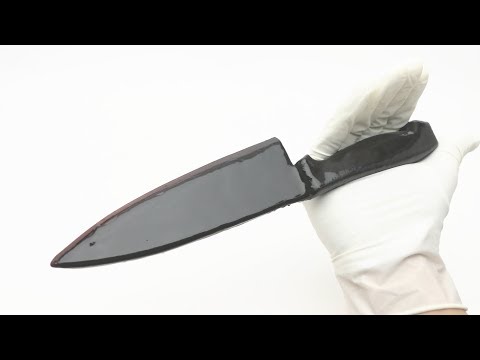 „Food can be cut. Kitchen knife made with chocolate“