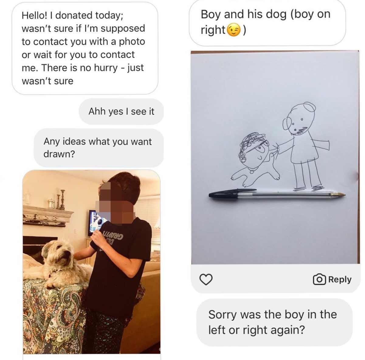 Mittlerweile macht er aufgrund des Andranges und der Akzeptanz seiner kleinen Doodles gar keine Frei-Arbeiten mehr. Aber er lässt sich finanziell unterstützen und bei einer Spende könnt ihr euer eigenes Abbild in seinem unverwechselbaren Kritzel-Stil erhalten.