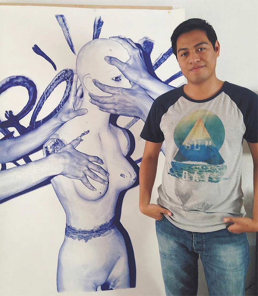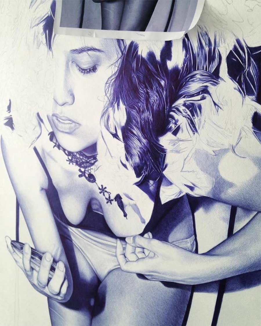 Der mexikanische Künstler Alfredo Chamal weiß mit dem Kugelschreiber deutlich mehr anzufangen, als während des Telefonats ein paar halbgare Skizzen zu krakeln. Seine Bilder sind ungemein realistisch gehalten und lassen beinahe vergessen, wie eintönig so eine Tintenmine doch eigentlich ist. Klasse!