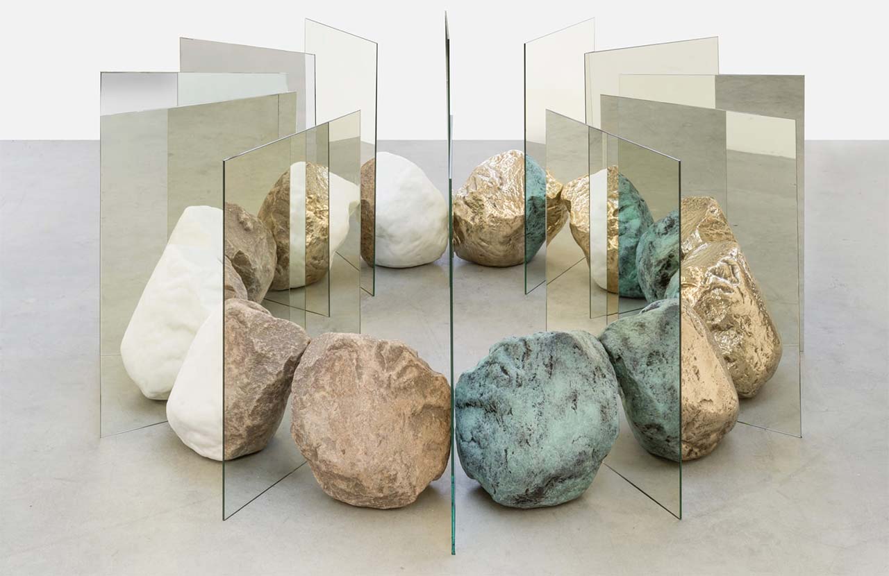 Alicja Kwade is known internationally for sculpture, expansive public installation, film, photography and works on paper that challenge scientific and philosophical concepts by dismantling the boundaries of perception. Her distinctive artistic language involves reflection, repetition, and the deconstruction and reconstruction of everyday objects and natural materials in an effort to explore the essence of our reality and to examine social structures. Often veering towards the absurd and transforming commonly accepted assumptions into open-ended questions, her poetic and mesmerizing oeuvre disrupts familiar systems and searches for new explanations to comprehend our world. – [Artist Statement]