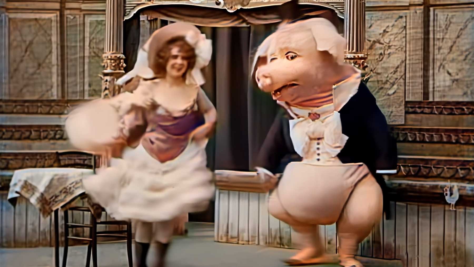 Vor 115 Jahren(!) wurde der gerade mal vierminütige Kurzfilm „Le Cochon Danseur“ („Das tanzende Schwein“) veröffentlicht. Nineteenth century videos. Back to life. hat die Aufnahmen jetzt restauriert, so dass uns das Alptraum-generierende Riesenschwein in Farbe, 4K-Auflösung und mit 50 Frames die Sekunde präsentiert wird.