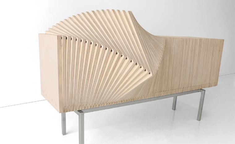 Originelles Design, das Funktion und Aussehen vereint. Das Wave Cabinet vom New Yorker Designer Sebastian ErraZuriz ist eigentlich genau das, was der Name sagt: eine Kommode in Wellenform. Zumindest, sobald man das eigentlich starr aussehende Äußere öffnet und damit herum spielt. Was so wunderbar einfach und flüssig ausschaut ist ein sehr kleinteiliger Mechanismus. Gekonnt gemacht!