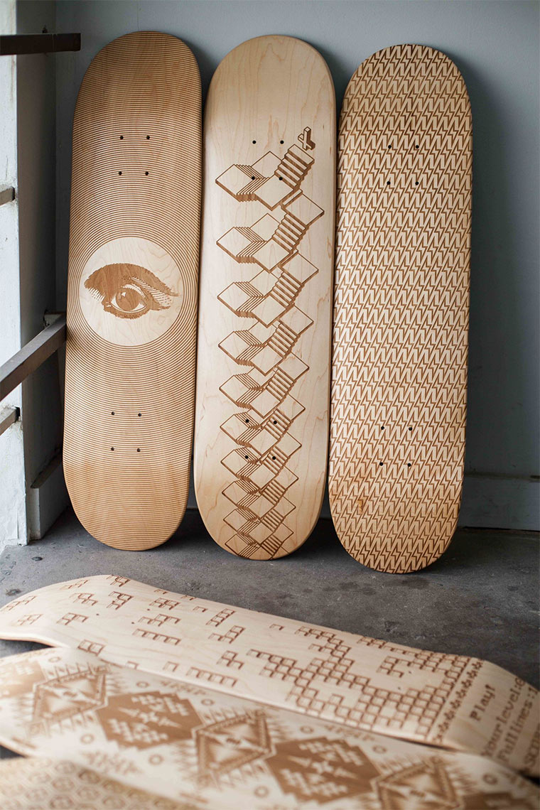 Mal wieder ein erfolgreich finanziertes kickstarter-Projekt. Magnetic Kitchen hat die Laser Engraved Skate Decks entworfen. Einige sehr schöne Illustrations-Designs per Laser in hölzerne Skateboard-Decks graviert. Über 15.000 Dollar haben sie für die Erstellung der nächsten Ration eingenommen. Wer die Bilder sieht, kann das durchaus verstehen, ist definitiv ein einzigartiges und stylisches Stück Innendeko.