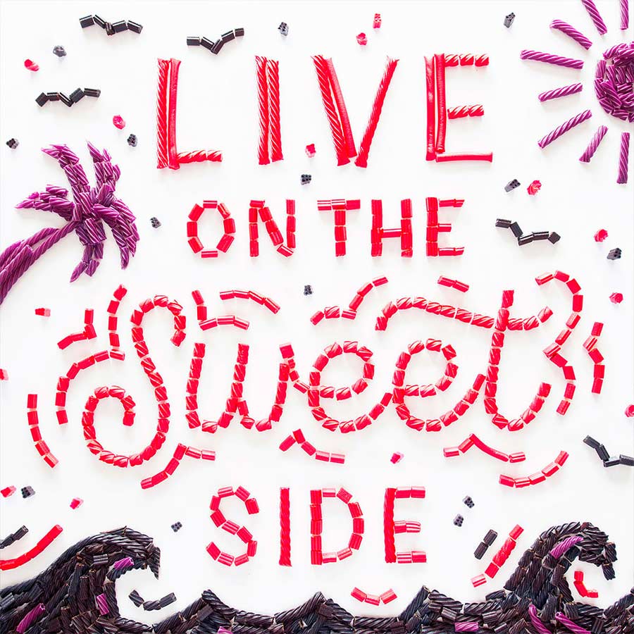 Vor über zwei Jahren hatte ich euch die tollen Food-Typografien von Becca Clason vorgestellt. Da ich es immer wieder interessant zu sehen finde, wie KünstlerInnen sich im Laufe der Zeit weiterentwickeln, gibt es jetzt ein kleines Update mit aktuellen Arbeiten der US-Amerikanerin. Dabei zeigt sich vor allem, dass sie jetzt von einzelnen Wörtern zu wunderschön gesetzten Sprüchen und Sätzen (und Werbeclaims) gewandert ist. Dazu wird nicht mehr nur Essen zum Setzen genutzt. Was bleibt, ist die ästhetische Inszenierung.