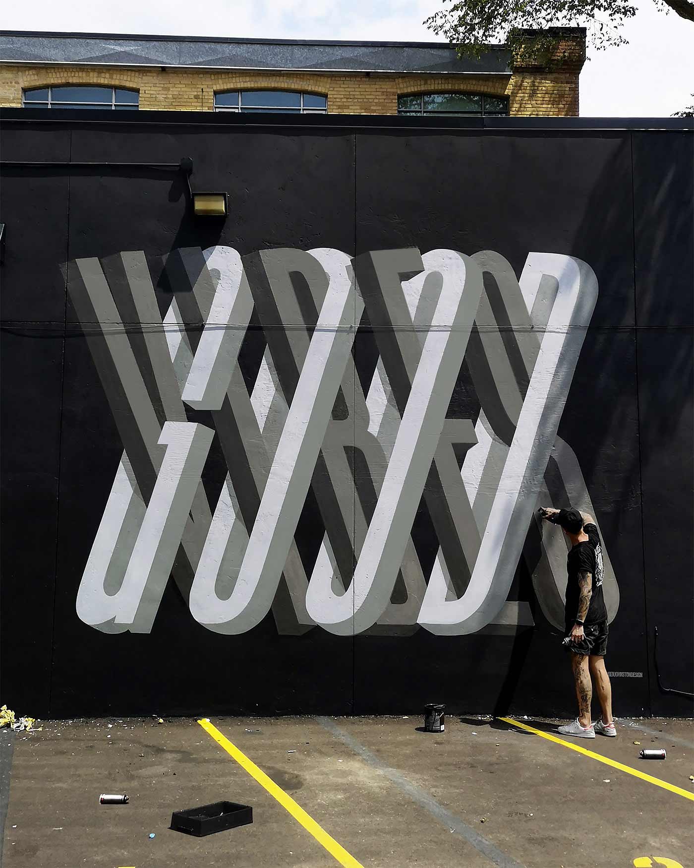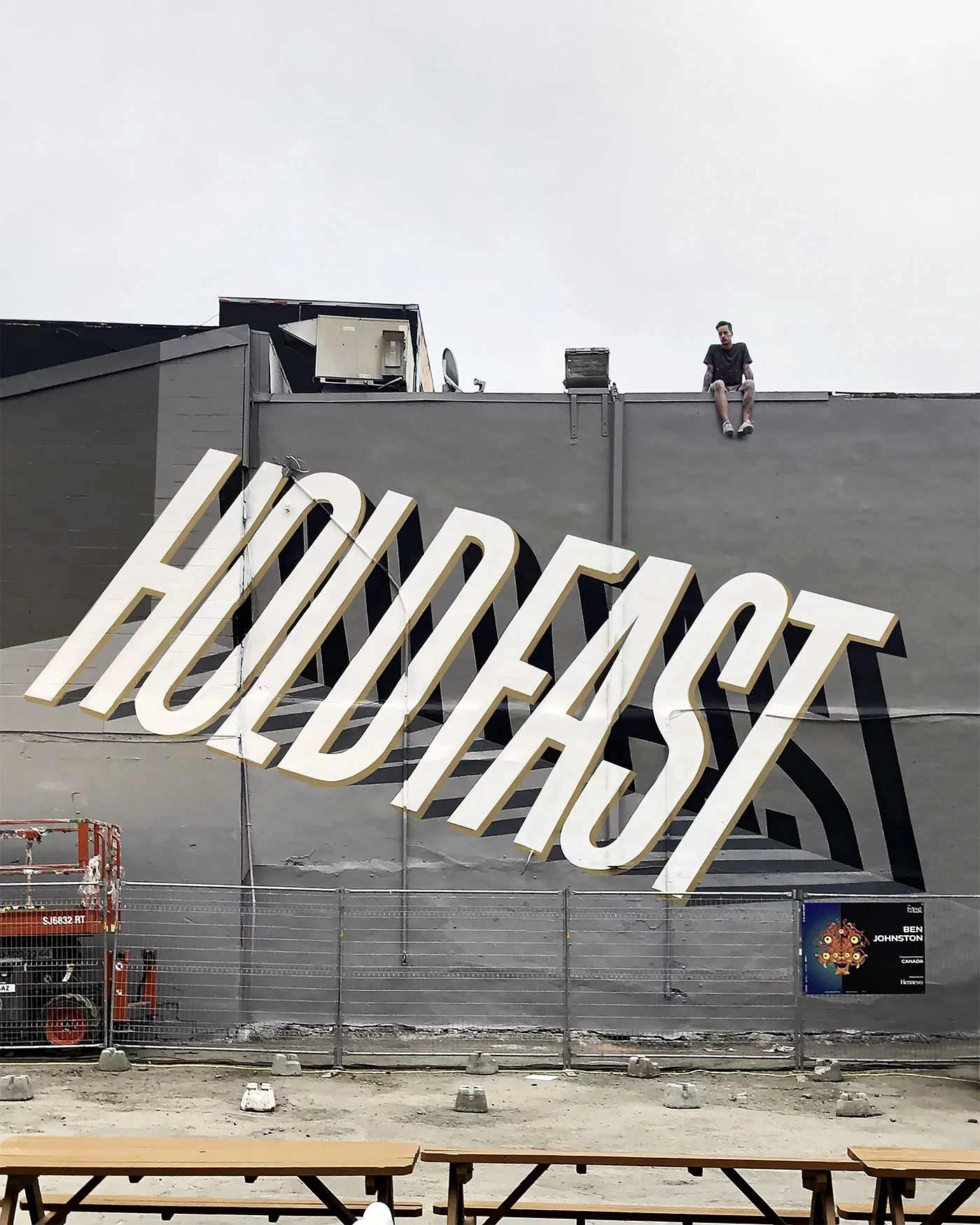 Wow, auch schon wieder über fünfeinhalb Jahre her, dass ich euch von den tollen Typografie-Arbeiten Ben Johnstons berichtet habe. Aus den damaligen Notizbuch-Typografien sind allerlei Ausformungen der Buchstaben-Kunst des Kanadiers entwachsen. Vor allem gigantische Murals entstehen durch die Hand des kreativen Lettering-Artists, der dabei gerne mit allerlei visuellen Effekten spielt. Die Buchstaben sehen also nicht einfach „nur“ schön aus, sie wirken durch diverse 3D-Effekte nochmal intensiver. Hier eine kleine Auswahl für euch.