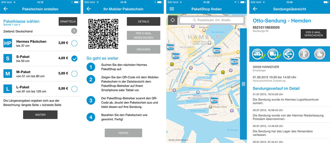 Eine angenehme Neuerung, gerade, wenn man sich Kontaktdaten aus dem Handy bzw. über die Nutzung der App ziehen kann. Und gerade in der stressigen Vorweihnachtszeit kann man so effizient die Zeit in Bus und Bahn nutzen, gibt das Paket einfach nur noch im Shop ab und verfolgt den Rest der Lieferung direkt über die App.