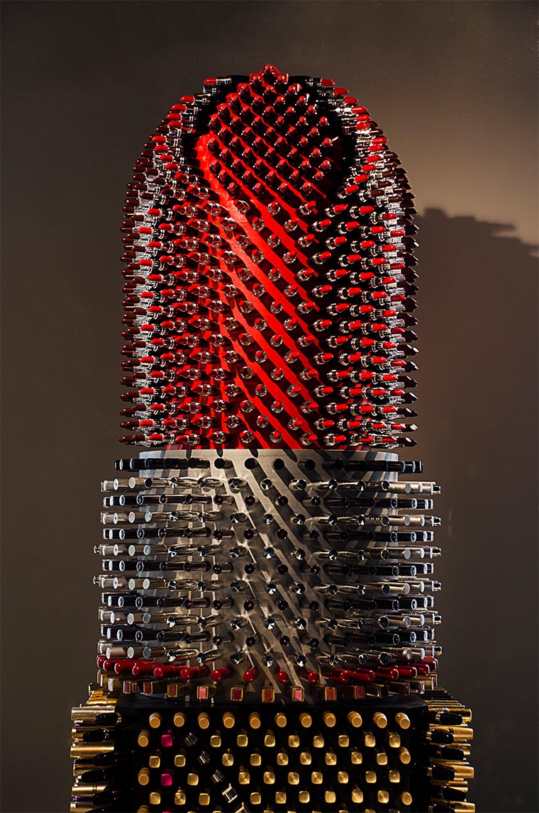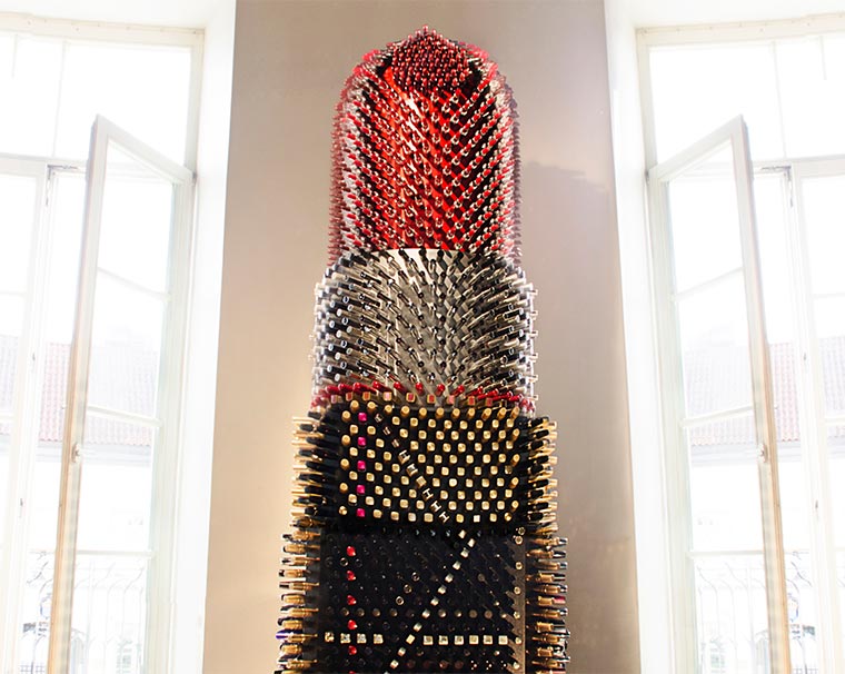 Erstellt hat die Riesenskulptur aus 5.000 echten Lippenstiften (und leider auch einer sehr sichtbaren Innensäule, auf dem alles fußt) die litauische Künstlerin Agne Kisonaite. Hier sieht man die Skulptur noch einmal in Aktion, bei der Präsentation im März 2013 – am Weltfrauentag.