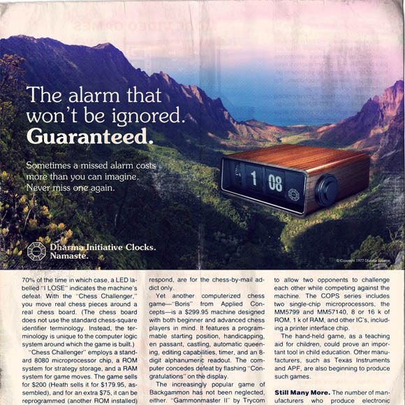 Cool! Adam Campbell hat diese gefakete Werbekampagne für Produkte der Dharma-Initiative und Sensationsserie LOST gebastelt in schicker vintage 70s-Optik. Herrlich. Ab 2. Februar gibt’s dann endlich wieder neue Bewegtbilder der sechsten und letzten Staffel auf abc.