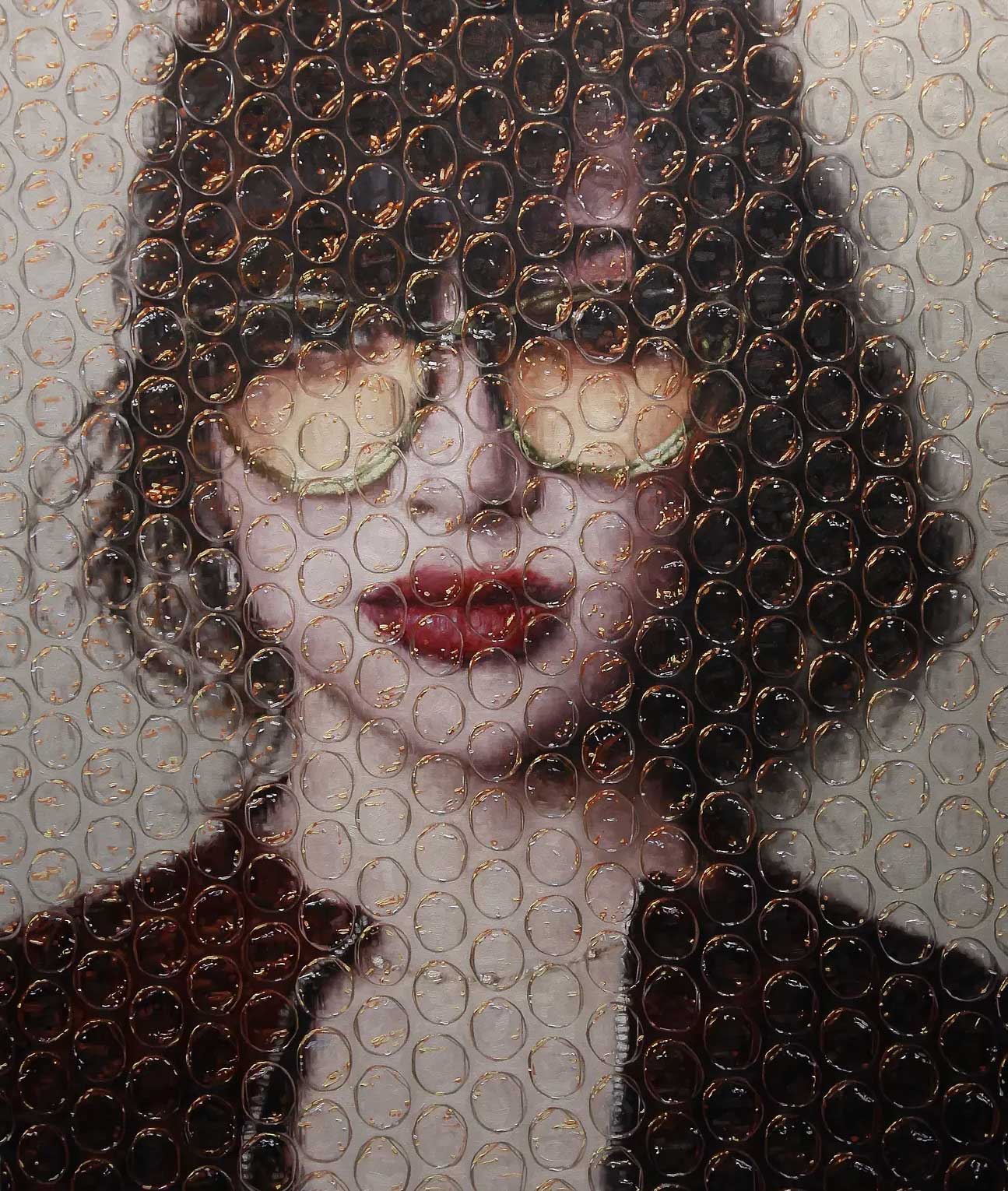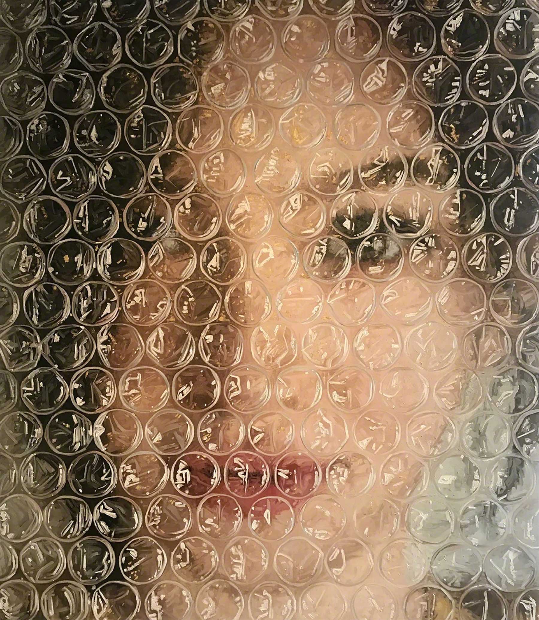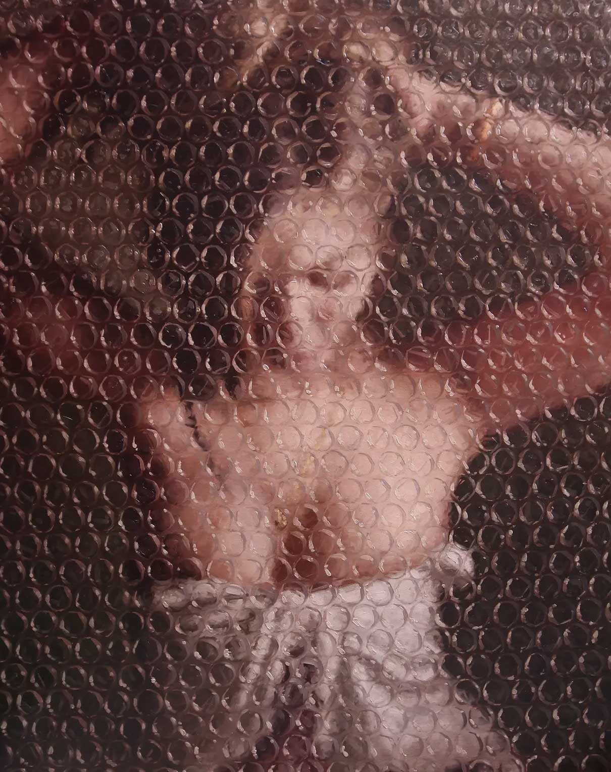 „Looking through something is one of the many obsessions that every artist has; Using an obstacle makes the vision more intriguing and less obvious: that’s why Mederos has created a series of works that use bubble wrap over his subjects to obscure their form and features. With the contrast between the detailed hyperrealism and the visual approximation of the ‚blurred‘ that hides under the plastic bubbles, he asks us to grasp the true essence of things, without them manifesting themselves openly before us.“ (Artist Statement)
